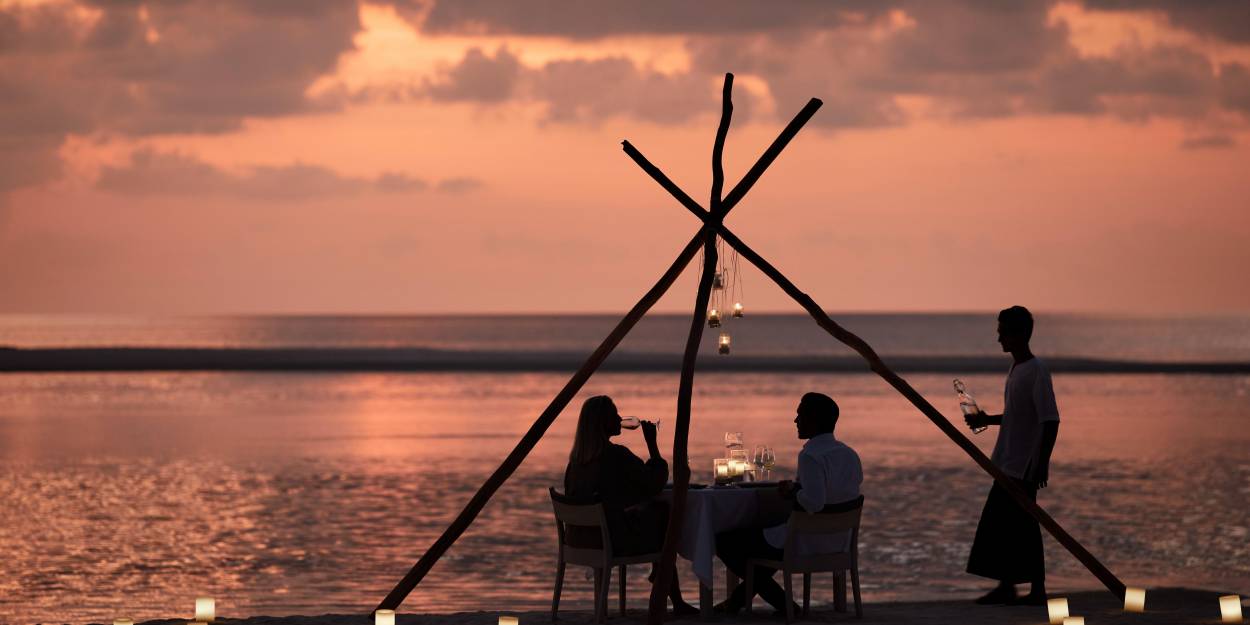 • Features a private sandbank dinner, sunset cruise, and couples’ spa rituals